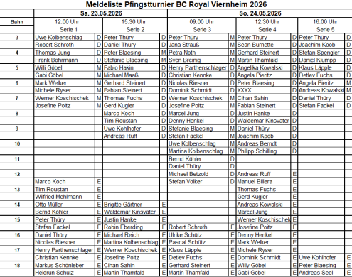 Zuletzt aktualisiert am 17.03.2026: Meldeliste Stand 17.03.2026